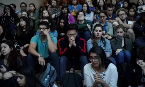 A woman at the vigil with a sign urging people to stay strong following the attack